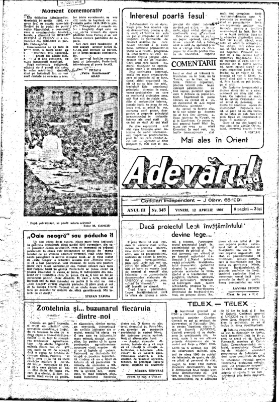 Adevărul, anul III, nr. 345, 1991-04-12