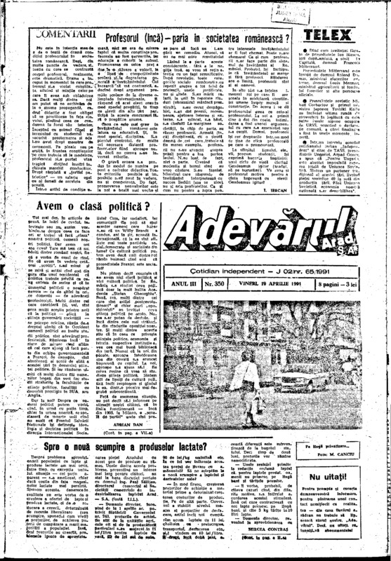 Adevărul, anul III, nr. 350, 1991-04-19