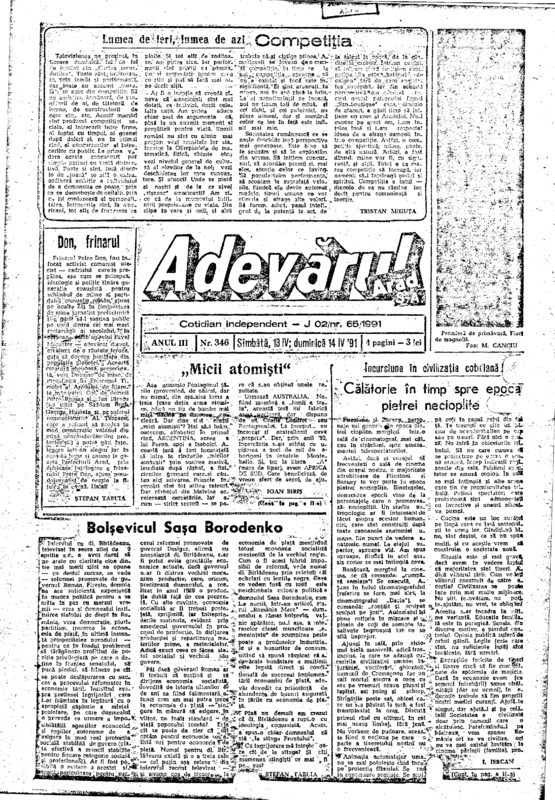 Adevărul, anul III, nr. 346, 1991-04-13/14