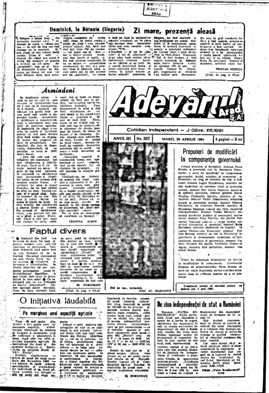 Adevărul, anul III, nr. 357, 1991-04-30