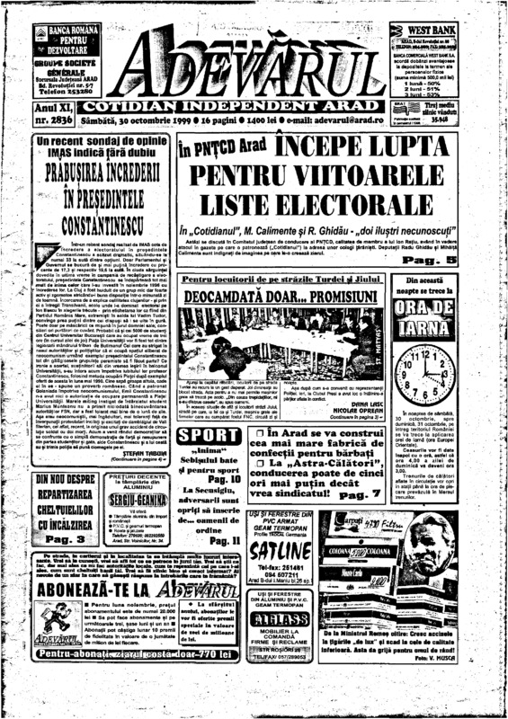 Adevărul, anul XI, nr. 2836, 1999-10-30