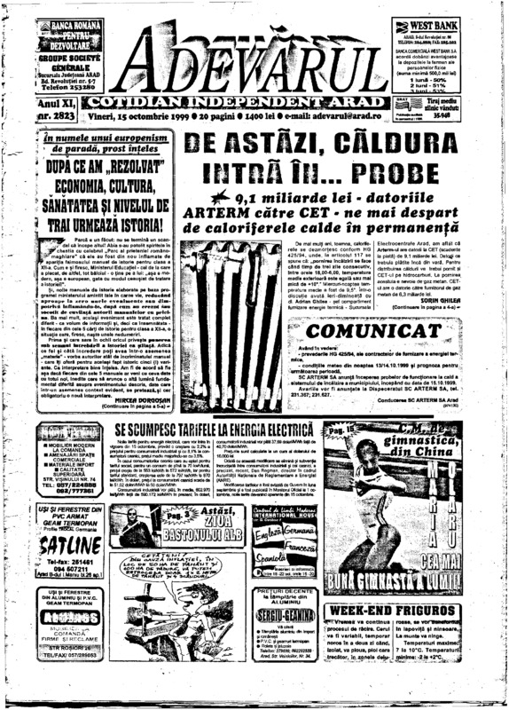 Adevărul, anul XI, nr. 2823, 1999-10-15