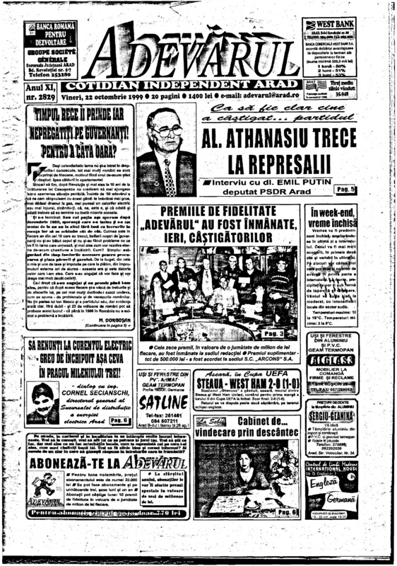 Adevărul, anul XI, nr. 2829, 1999-10-22