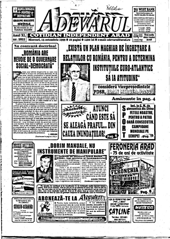 Adevărul, anul XI, nr. 2821, 1999-10-13