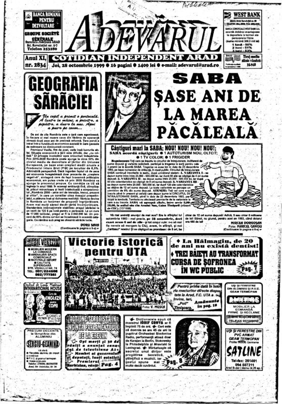 Adevărul, anul XI, nr. 2834, 1999-10-28