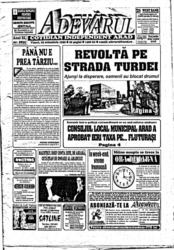 Adevărul, anul XI, nr. 2835, 1999-10-29
