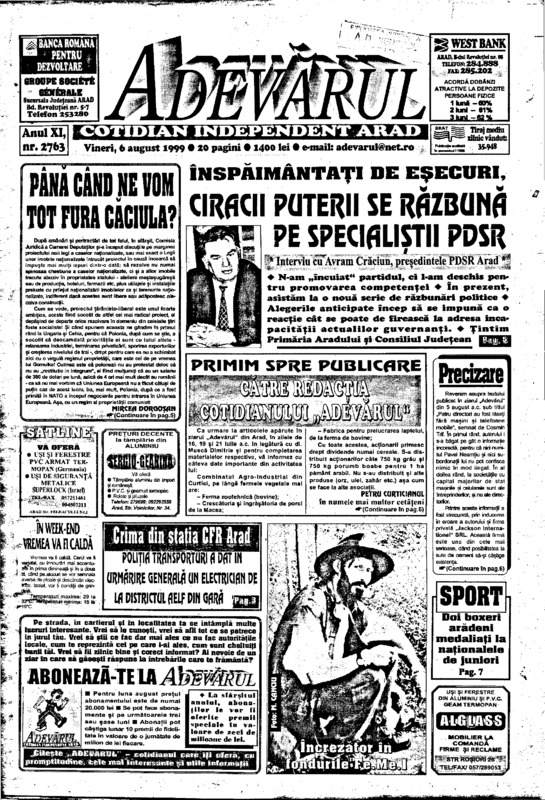 Adevărul, anul XI, nr. 2763, 1999-08-06