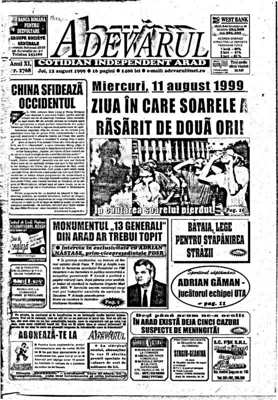 Adevărul, anul XI, nr. 2768, 1999-08-12