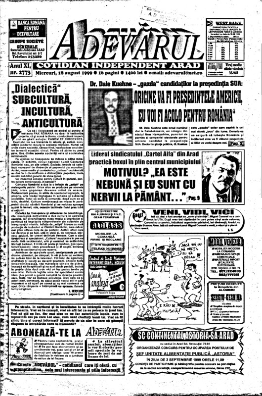 Adevărul, anul XI, nr. 2773, 1999-08-18