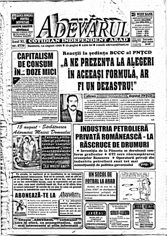 Adevărul, anul XI, nr. 2770, 1999-08-14