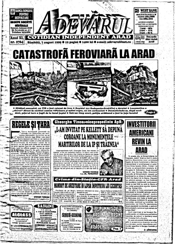 Adevărul, anul XI, nr. 2764, 1999-08-07