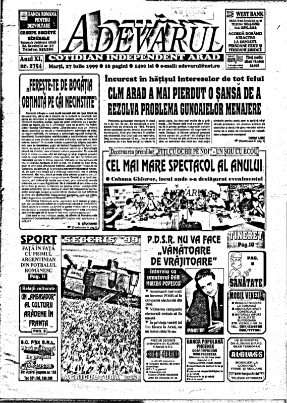Adevărul, anul XI, nr. 2754, 1999-07-27
