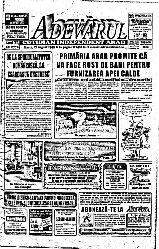 Adevărul, anul XI, nr. 2772, 1999-08-17
