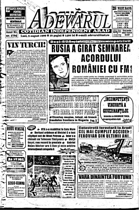 Adevărul, anul XI, nr. 2759, 1999-08-02