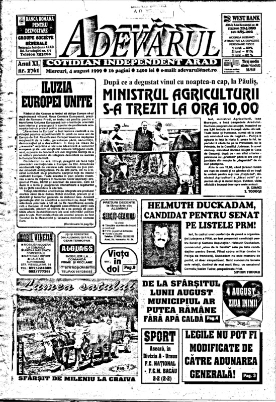 Adevărul, anul XI, nr. 2761, 1999-08-04