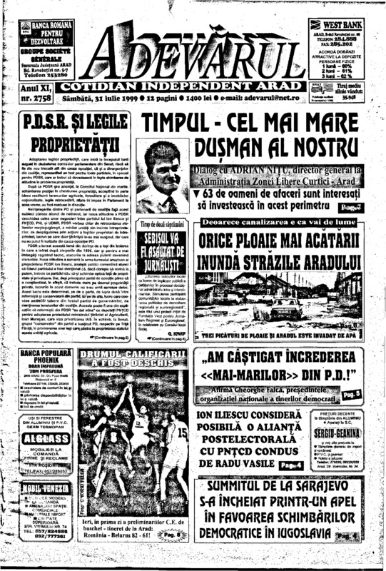 Adevărul, anul XI, nr. 2758, 1999-07-31