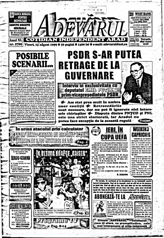 Adevărul, anul XI, nr. 2769, 1999-08-13