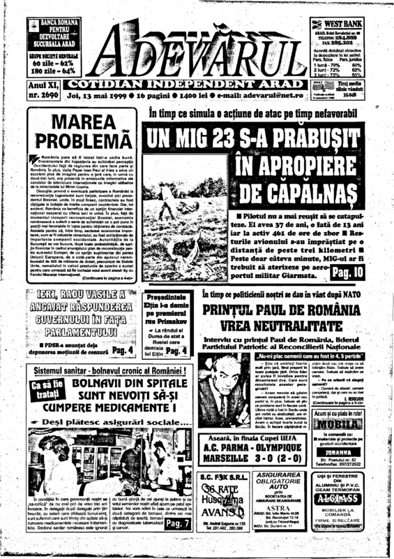 Adevărul, anul XI, nr. 2689, 1999-05-13