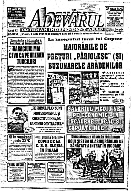 Adevărul, anul XI, nr. 2733, 1999-07-02