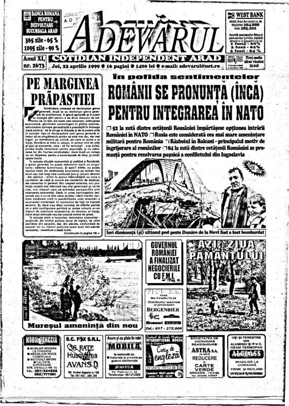 Adevărul, anul XI, nr. 2673, 1999-04-22