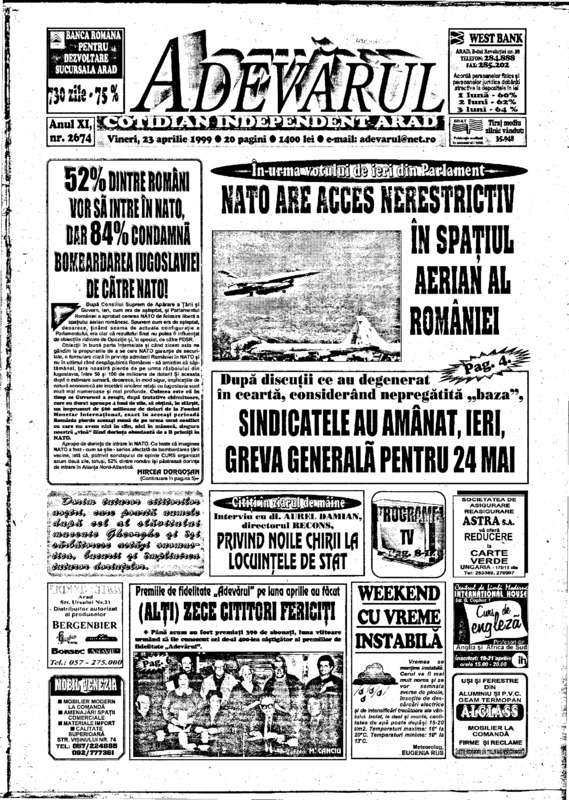 Adevărul, anul XI, nr. 2674, 1999-04-23