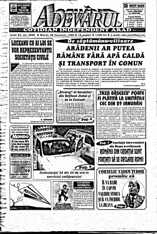 Adevărul, anul XI, nr. 2600, 1999-01-26