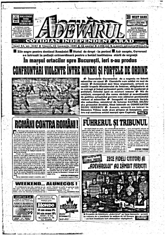 Adevărul, anul XI, nr. 2597, 1999-01-22