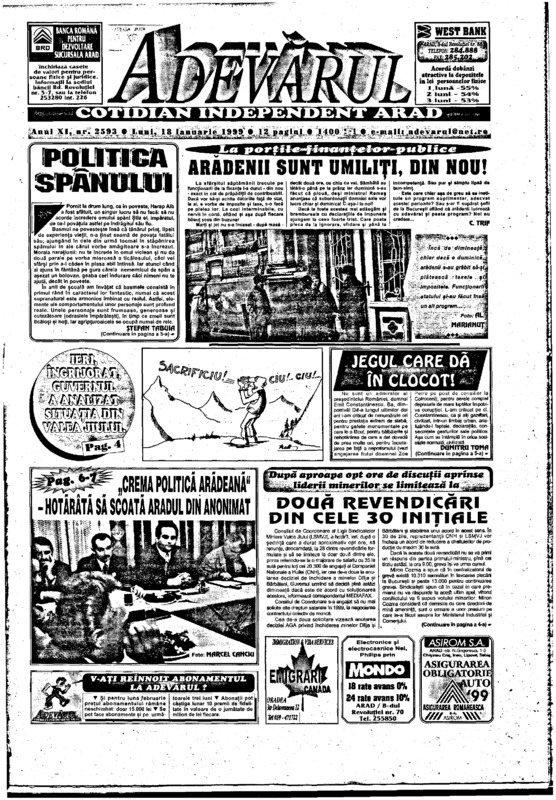 Adevărul, anul XI, nr. 2593, 1999-01-18