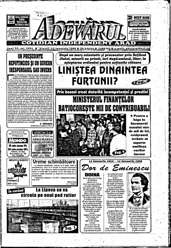 Adevărul, anul XI, nr. 2591, 1999-01-15