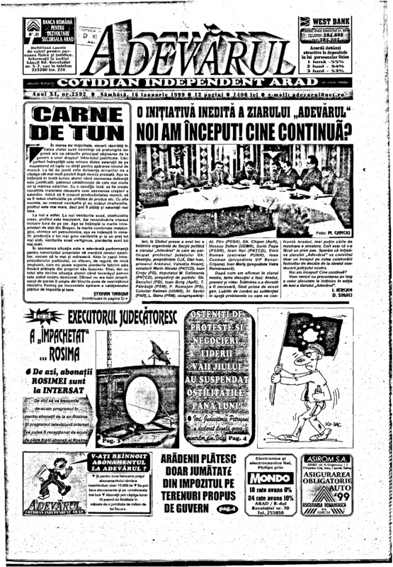 Adevărul, anul XI, nr. 2592, 1999-01-16